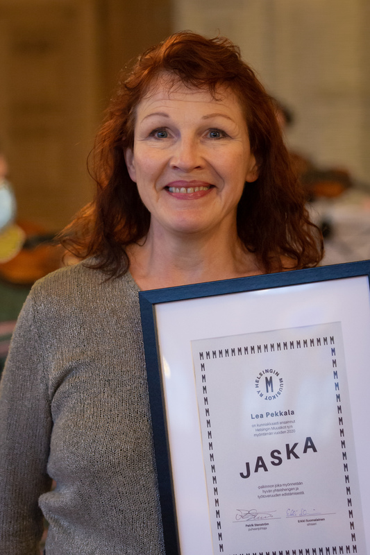 Helsingin Muusikot ry on jakanut lähes kahdenkymmen vuoden ajan Jaska-palkintoa hyvälle työtoverille, joka luo yhteisöönsä positiivista työilmapiiriä. [teksti] Palkinnon saatetekstissä sanotaan: ”Orkesterimuusikon yhteistyökyky, työyhteisöön sopeutuminen, positiivinen mieliala ja hyvä työtoveruus ovat ominaisuuksia, joita ei koesoitoissa pystytä mittaamaan, mutta joiden vaikutus työilmapiiriin ja sitä kautta yhteissoittoon on suuri. Orkesterissa, jossa työntekijät ovat fyysisesti hyvin lähellä toisiaan, mielialat heijastuvat herkästi lähiympäristöön.” Palkinto jaetaan joka vuosi Helsingin kaupunginorkesterissa, Radion sinfoniaorkesterissa, Suomen kansallisoopperan orkesterissa sekä freelancerjäsenistössä – joka toinen vuosi lisäksi Tapiola Sinfoniettassa. Kunkin orkesterin valtuuskunta tekee vuosittain ehdotuksensa palkittavista muusikoista Helsingin Muusikot ry:n johtokunnalle. Palkinto sisältää 500 euron shekin ja kehystetyn kunniakirjan. Vuoden 2020 Jaska-palkitut ovat: SKO: Simo Finni (tuuba) RSO: Paula Sundqvist (viulu) HKO: Kaarina Ikonen (alttoviulu) Freelance: Lea Pekkala (sello)